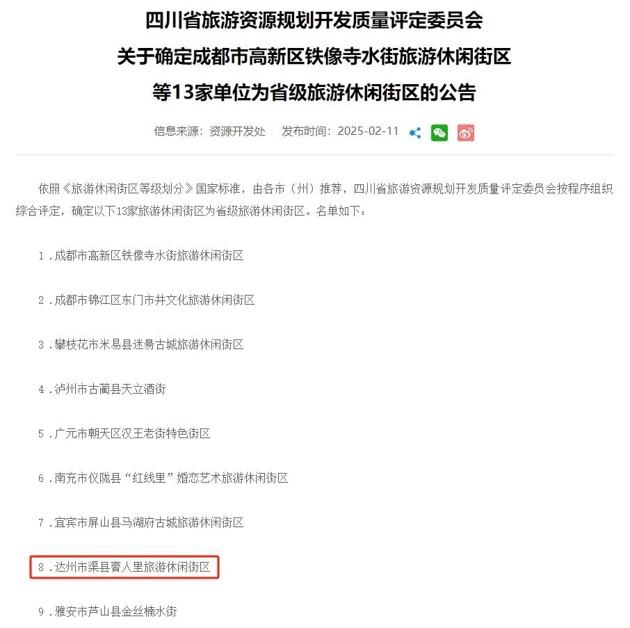 近日,四川省旅游資源規(guī)劃開發(fā)質(zhì)量評定委員會發(fā)布公告,13家單位達(dá)到省級旅游休閑街區(qū)標(biāo)準(zhǔn),正式確定為省級旅游休閑街區(qū)。其中,晟景文旅服務(wù)項目達(dá)州市渠縣賨人里旅游休閑街區(qū)名列其中,成功榮獲這一殊榮。
